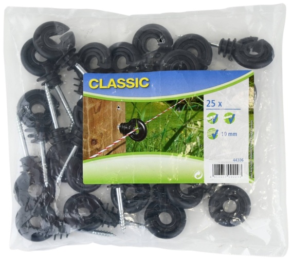 opakowanie: 25 szt. w torebce / 500 szt. w kartonie wytrzymały izolator wkręcany w drewno trzpień o średnicy 5mm do drutu i plecionki odporny na działanie czynników atmosferycznych i promieniowania UV